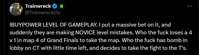 TL;DR: Trainwreckstv lost $5M at the BLAST Rivals Grand Finale last weekend. This followed his huge $37.5M win in July. He may have won previously, but this loss was huge.